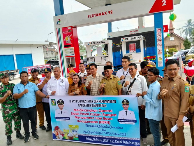 SIMALUNGUN – Kasat Reskrim Polres Simalungun AKP Herison Manulang, S.H. mewakili Kapolres Simalungun mengikuti operasi sidak pasar dan SPBU bersama Bupati Simalungun beserta jajaran Pemkab Simalungun dalam rangka menyambut Hari Besar Keagamaan Nasional (HBKN) Idul Fitri 1447 Hijriah Tahun 2026, Selasa (10/3/2026) mulai pukul 08.00 WIB di Pasar Tradisional Dolok Batu Nanggar dan SPBU Dolok Batu Nanggar, Kecamatan Dolok Batu Nanggar.